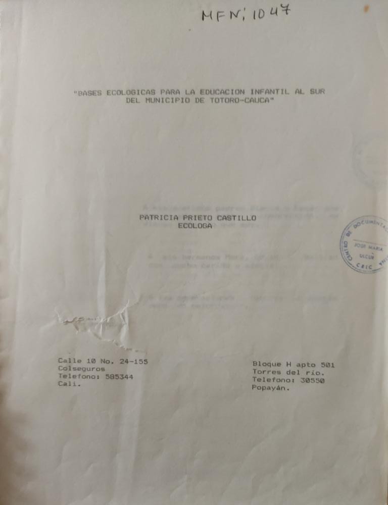 BASES ECOLÓGICAS PARA LA EDUCACIÓN INFANTIL AL SUR DEL MUNICIPIO DE TOTORO CAUCA